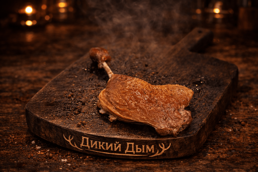 Утиная ножка, томлённая в собственном жире по классической технологии конфи и доведённая до хрустящей золотистой корочки
