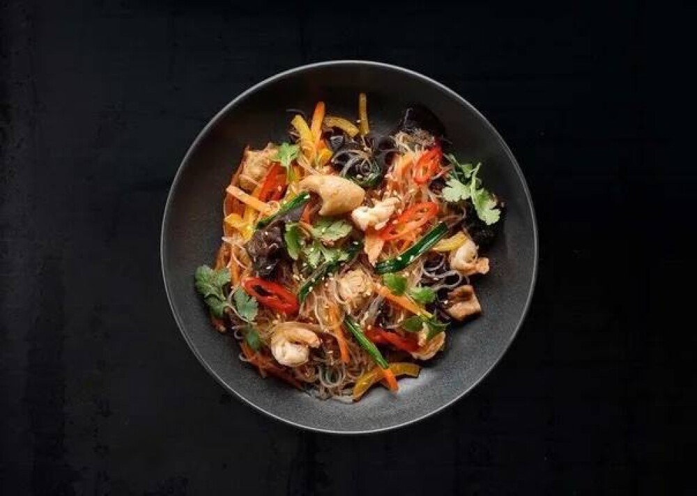 Фунчоза в тайском стиле с овощами и морепродуктами